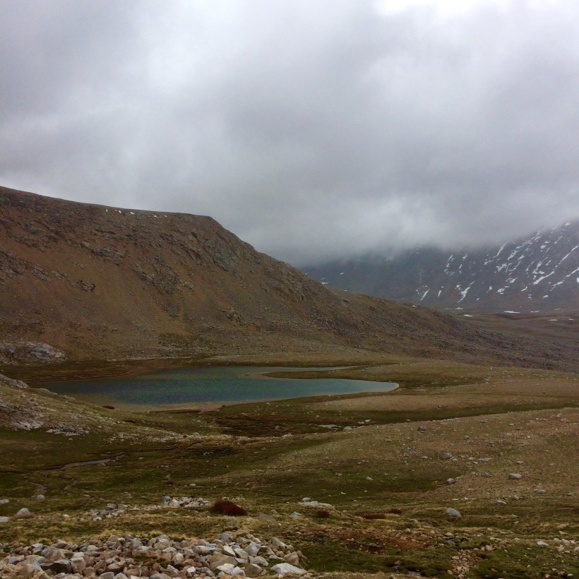 the pass is somewhere up that rock wall in those clouds