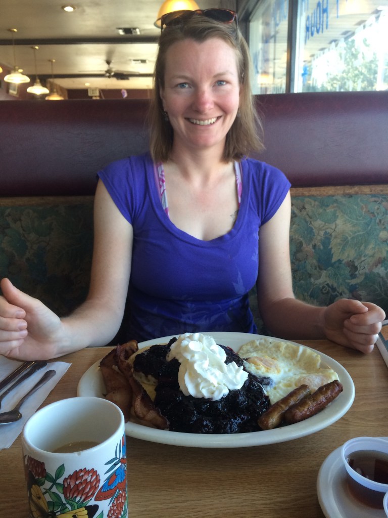 There is such a stark contrast between our times in towns and our times on the trail. We go from one extreme to the other: from getting up early, spending all day on our feet, out in the open air, eating food out of ziplock bags to sleeping in, lying around in an air conditioned motel room on a soft bed, walking as little as possible, and eating as much as possible. Essentially, from extremely active to extremely lazy. And I love it! I love being able to order a big meal at a restaurant and finishing the entire thing (although Jason says he now has to rethink his ordering strategy to no longer include eating what’s left of my plate!). I love getting a little pang of afternoon hunger and filling it with whatever it is I’m craving – today a McFlurry.